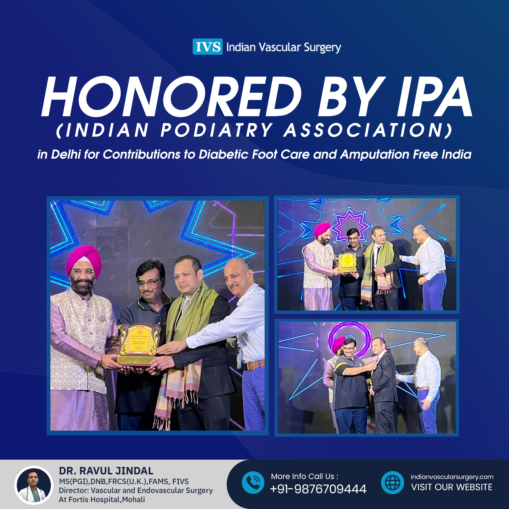 Honored by IPA (Indian Podiatry Association) in Delhi for Contributions to Diabetic Foot Care and Amputation Free India